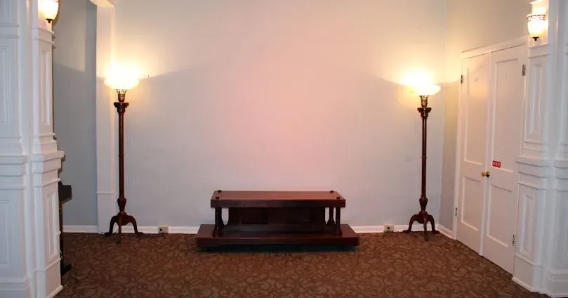 There an old rope operated elevator lift in the rear section of the building that was once used as a lift to the second floor sanctuary of the Carrollton United Methodist Church. It is used to this day to move caskets from the second floor selection room to all other floors of the building, but it has been updated with an electric winch.